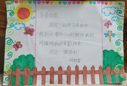 (受助学生给志愿者写的感谢信)