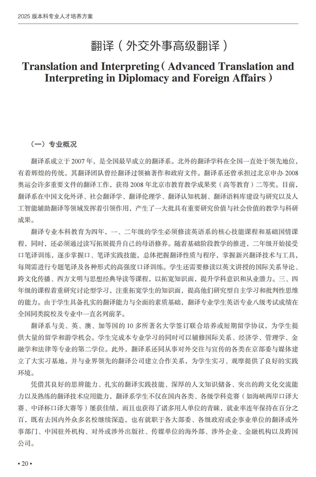 翻译(外事外交高级翻译)专业本科培养方案(2025)