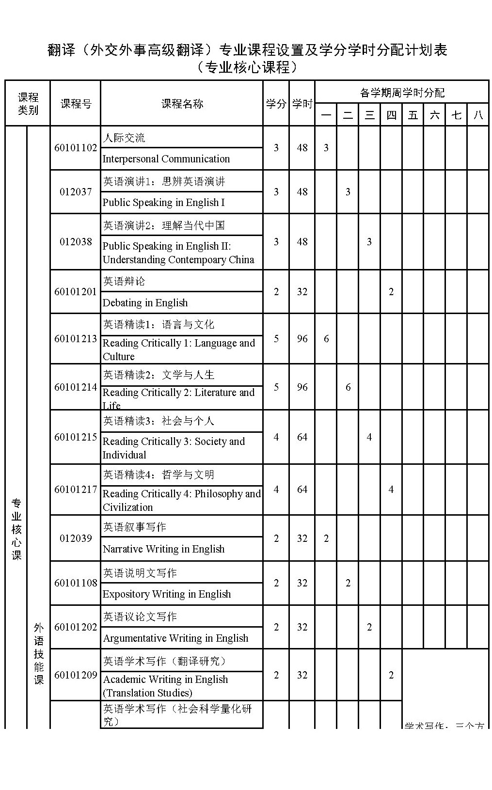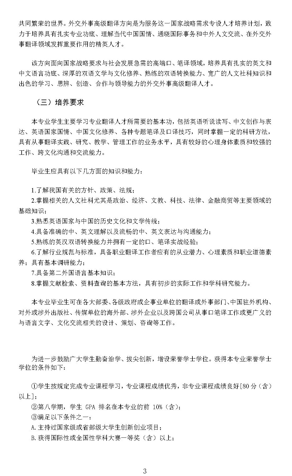 海角视频 翻译(外交外事高级翻译)专业本科培养方案(2024)