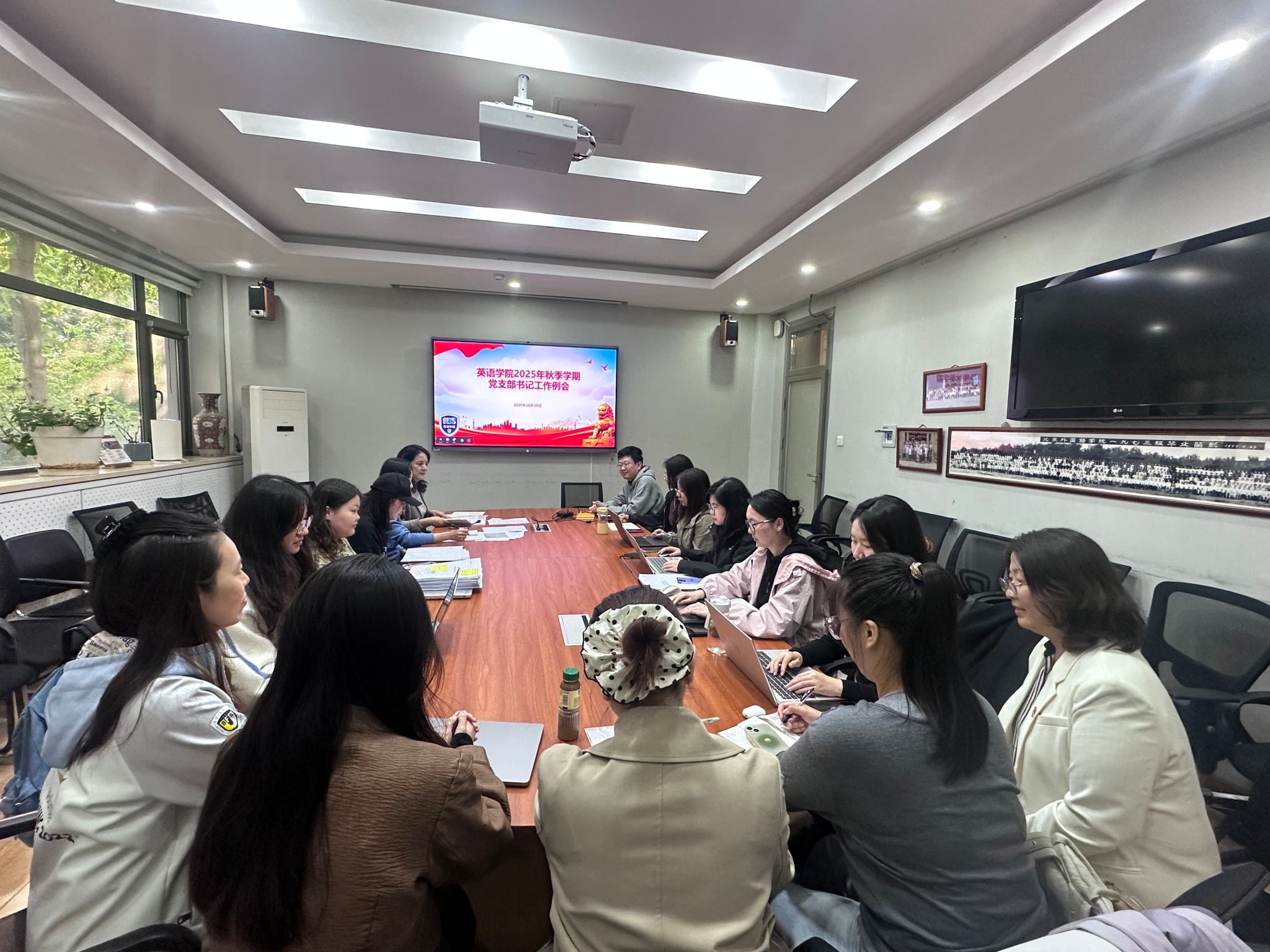 党总支在英语楼111会议室召开2025年秋季学期党支部书记工作例会,全面部署近期党建重点工作任务。会议由学院党总支书记殷悦主持,组织员王欣扬和全体师生党支部书记参会。