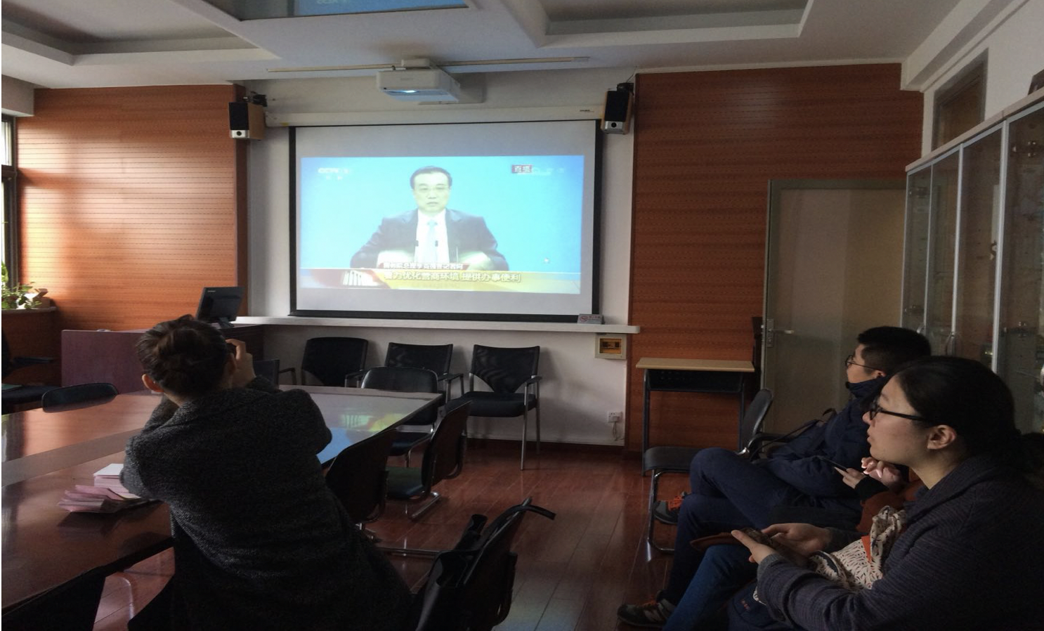3月20日(星期二)上午,十三届全国人大一次会议闭幕后,国务院总理李克强在人民大会堂金色大厅会见采访十三届全国人大一次会议的中外记者并回答记者提出的问题,这是每年两会的“压轴大戏”。海角视频 组织师生观看现场直播,辅导员及部分学生党、团支部书记,学生骨干参会学习。