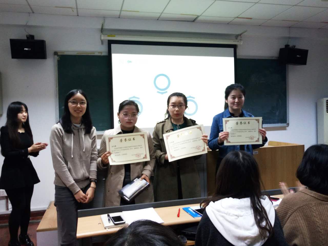 沈越老师分别为获得优秀部门称号的外联部、文艺部和宣传部颁奖,其后三位部长作为代表发言,她们对过去一学期老师和同学对研会活动的支持表达了感谢,并表示再接再厉,继续为大家举办更为精彩的活动。英研会主席团成员为获得优秀干部和优秀干事的同学颁发证书和奖品,另有获得优秀干事称号的三位同学和大家分享了在研会工作的进步和成长。