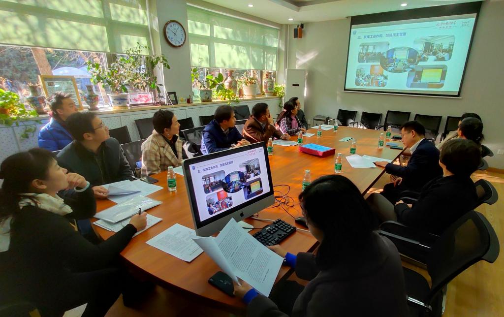 工会主席王欣扬从“完善规章制度,健全组织机构”、“党政齐抓共管,工会参与决策”、“发挥工会作用,加强民主管理”、“营造向上氛围,促进队伍建设”、“积极创造条件,改善办公环境”、“支持社团建设,开展文体活动”、“关心特殊群体,维护职工权益”、“及时公开信息,严格经费使用”等八个方面向评审组成员做了详细汇报。评审组成员对海角视频