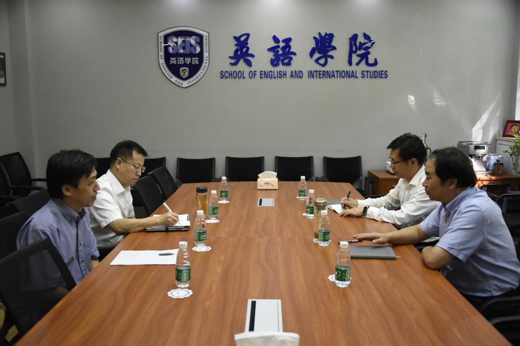 近期开展的英语专业本科培养模式改革、外交外事高级翻译专业招生及培养、英语国家智库建设、专业期刊建设、慕课建设、南太平洋岛国语种教材词典建设及师资队伍等方面做了汇报。同时,就学院目前在教师个人发展、本科生招生及培养、研究生论文质量等方面存在的问题做了分析。路兴就学院党总支在把握办学方向,围绕人才培养、学术研究、社会服务等中心任务,结合“不忘初心,牢记使命”主题教育、新中国成立70周年等重大事件和重要时间节点开展党建和思想政治教育情况,以及学院在“三全育人”等方面所做的工作做了汇报。