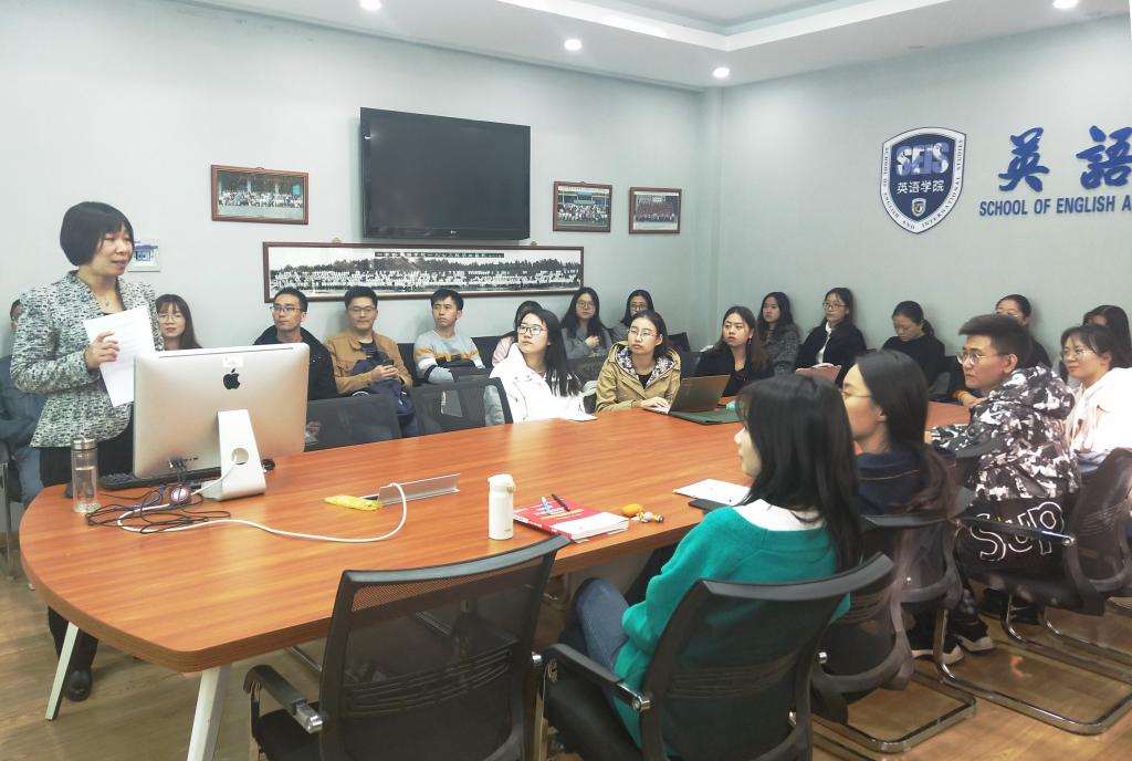 11月1日下午,英语学院副院长彭萍在英语楼111会议室为翻译专业研究生党员和入党积极分子开展“不忘初心,牢记使命”主题教育专题党课活动,党课的题目是“深刻认识文化自信,讲好中国故事”。来自英语学院研究生MTI笔译党支部、研究生MTI口译党支部和研究生翻译学党支部的30余名同学聆听了此次党课。