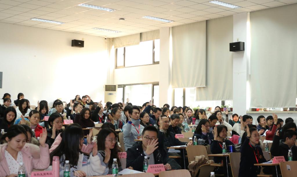 大会在庄严的《国歌》声中开始。路兴同志代表上一届党总支委员会做工作报告。报告从“以党的政治建设为统领,推进全面从严治党落地生根”、“以教学科研为中心,推动学院事业平稳较快发展”和“以和谐稳定为保障,营造学院良好育人环境氛围”三个方面总结回顾了近几年工作。并对党费收缴、使用和管理情况向与会党员做报告。经大会审议表决,一致通过工作报告。