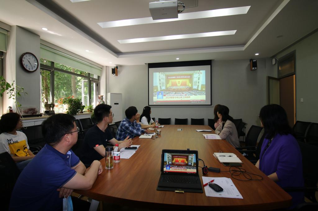 教职工行政党支部党员们在英语楼111会议室集体收看学习大会开幕式,认真聆听李克强总理关于政府工作的报告,第一时间学习领会大会精神。