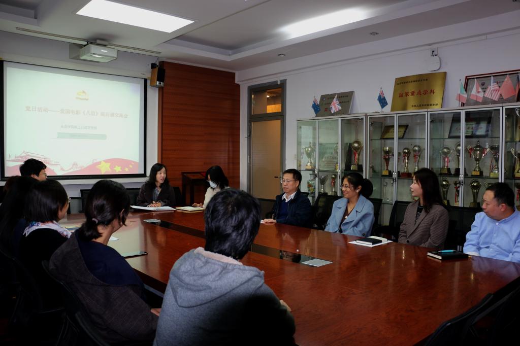 为进一步加强规范支部党员政治生活,强化教育管理,深入推进“不忘初心、牢记使命”主题教育的开展,重温抗战历史,激发大家的爱国主义热情,英语学院教工行政党支部于10月21日组织开展党员观影活动,选择爱国教育影片《八佰》作为学习内容。并于10月22日在英语楼115会议室召开观后感交流党课活动。