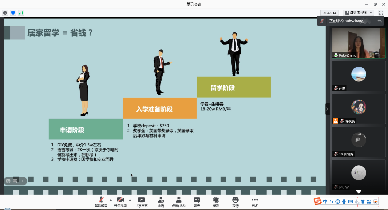 分享会第五部分邀请2017级王靖潼、段金秀同志分享自己出国交换的经历。两位同志结合自己在国外求学的经历,详细地分析了大三学年出国交换的利弊,分享了自己交换期间的感悟和收获,并为有意愿交换的学弟学妹们提出了宝贵建议。