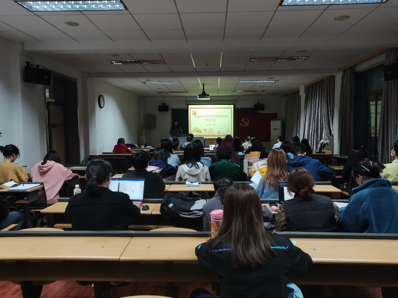 会上,同志们通过一则视频短片,回顾了中国共产党百年奋斗历程中入党誓词的变迁。随后在孙琳同志的带领下,16位预备党员面向党旗庄严宣誓。之后同志们对于本学期支部的党员发展工作进行了讨论。