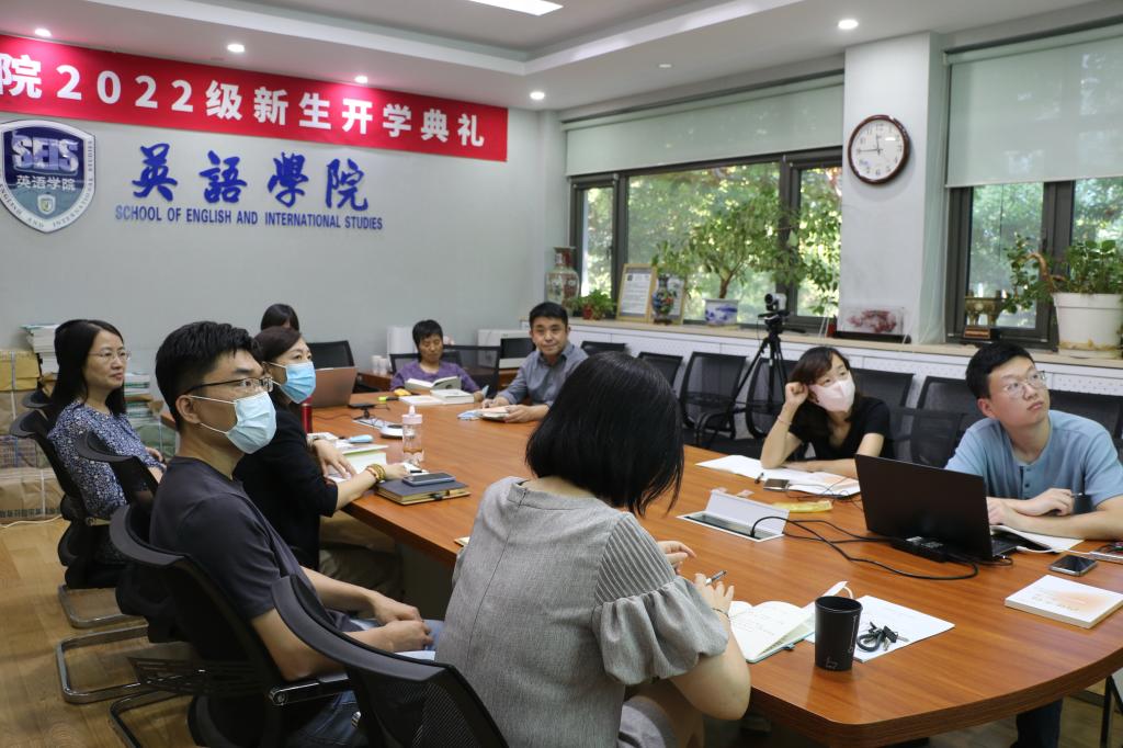 党总支召开理论中心组学习扩大会暨《习近平谈治国理政》第四卷双语学习主题党课。学院理论中心组全体成员和班子成员在111会议室参加学习,学院翻译方向本科生、翻译专业研究生100余名在线上参加学习。海角视频