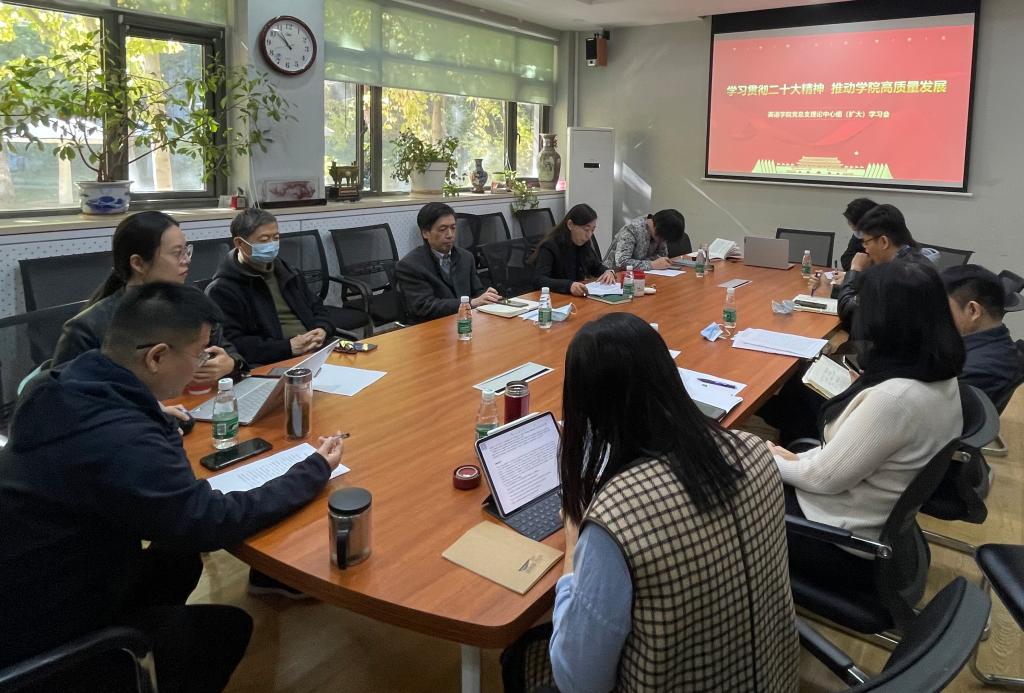 党总支召开“学习贯彻二十大精神,推动学院高质量发展 ”理论学习中心组(扩大)专题学习会,理论学习中心组成员、领导班子成员参会,会议由党总支书记王明欣主持。