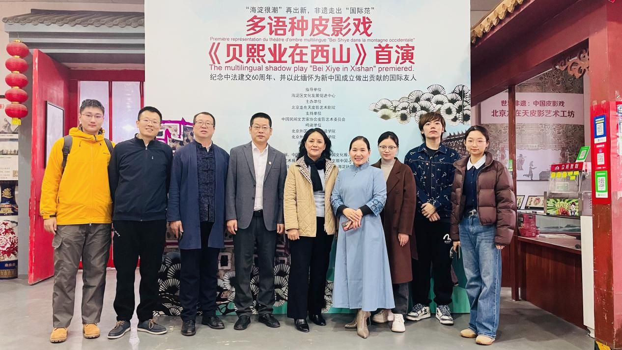 研究生文学党支部应北京龙在天皮影艺术剧院之邀,前往北京昌平龙在天皮影剧院,参加多语种皮影戏《贝熙业在西山》的首演活动。本次活动在海淀区文化发展促进中心的指导下,通过多语种皮影戏的形式,旨在纪念中法建交60周年,并进一步增强海淀文化的国际影响力与传播力度。北京中法实验学校、海淀区委老干部局等200余人参加了活动。
