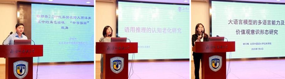 徐瑞珂副教授作题为“特朗普2.0时代英国在跨大西洋关系中的角色困境:‘中等强国’视角”的报告,分析英国在处理对美以及对欧关系上的“中等强国”外交困境。北外人工智能与人类语言重点实验室助理研究员冯望舒作题为“语用推理的认知老化研究”的报告,旨在全面采用脑电技术,从理解意义的角度探讨语用推理中的认知老化现象及其背后的神经机制。北外信息科学学院徐月梅副教授作题为“大语言模型的多语言能力困境及价值观意识形态研究”的报告,探讨了大语言模型在多语言能力面临的困境,分析不同语言和不同文化背景下的存在的偏见和价值观意识形态风险问题,并提出解决思路与发展方向。