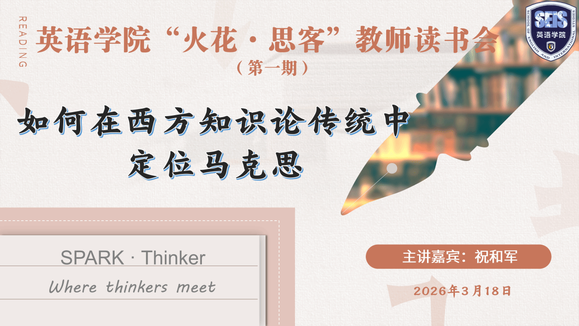 党总支书记殷悦在总结中指出,2026年是“十五五”开局之年,也是习近平总书记在哲学社会科学工作座谈会上发表重要讲话10周年。坚持以马克思主义为指导,是中国哲学社会科学得以构建的鲜亮底色。她感谢祝老师的精彩分享,强调学院教师要深入把握好马克思主义的立场观点方法,在多学科交叉交融中拓宽学术视野,开展创新性研究。本次读书会不仅是一场读书分享,更是一次思想启程(Where thinkers meet. 思想在此相遇)。学院将以“火花·思客”为载体,打造常态化、深层次的教师交流平台,让思想在对话中碰撞,智慧在交流中生长。