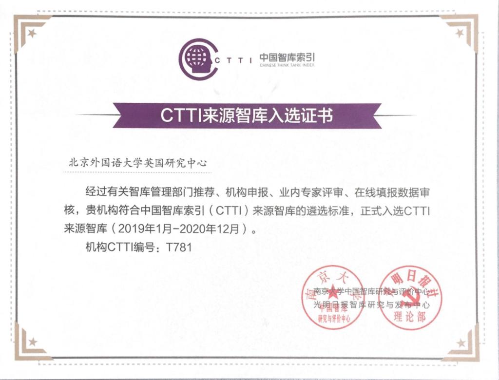 中国智库索引(CTTI)是南京大学中国智库研究与评价中心联合光明日报智库研究与发布中心开发的智库数据管理与评价系统,目前收录党政系统、高校、社会智库706家。我院目前有加拿大研究中心和英国研究中心两家CTTI来源智库。
