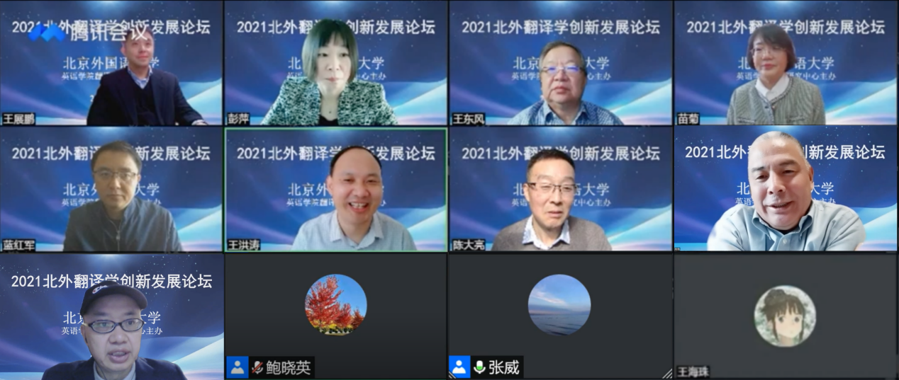 翻译研究中心承办的“2021北外翻译学创新发展论坛”在云端隆重举行。论坛邀请到来自全国二十多所高校的专家学者及硕博研究生参与,腾讯会议及直播间观看人数累计736人。