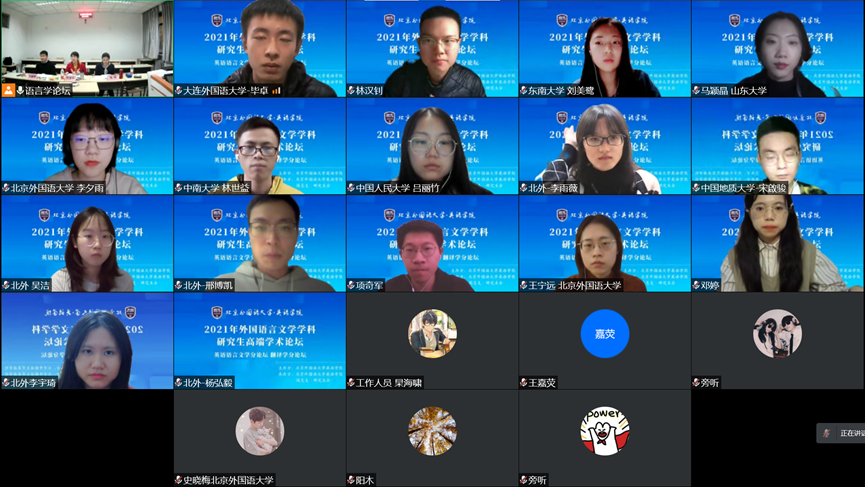 副院长王展鹏教授在致辞中表示,2021年英语语言文学分论坛首次向全国高校学生开放,旨在发挥北外外国语言文学学科的传统优势,为国内外语专业学生展示最新研究成果、交流学术经验提供平台,帮助学生开阔学术视野,提高学术创新能力,促进外语学科的人才培养和学科发展。