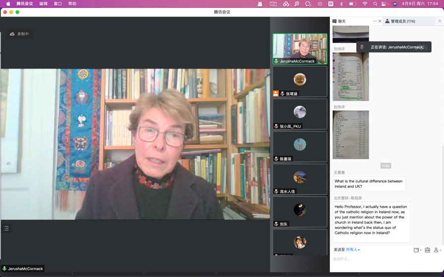 Jerusha McCormack教授的讲座探讨“爱尔兰作为一个小国为何有如此大的影响”这一问题。Jerusha教授将回答分为三部分,首先讲述了爱尔兰作为天主教国家在世界上的影响,其次阐释了爱尔兰和英国的联系对于爱尔兰的国际影响力起到了怎样的作用,最后说明凯尔特文化、爱尔兰文学等要素进一步增强了爱尔兰文化软实力对全世界深远的影响。随后,Jerusha教授将爱尔兰与中国相联系,通过对于两者历史、文化、身份的比较。之后,Jerusha教授细心地回答了同学和老师们提出的多个问题,讲座持续了一个半小时,最后由王展鹏老师做总结发言。