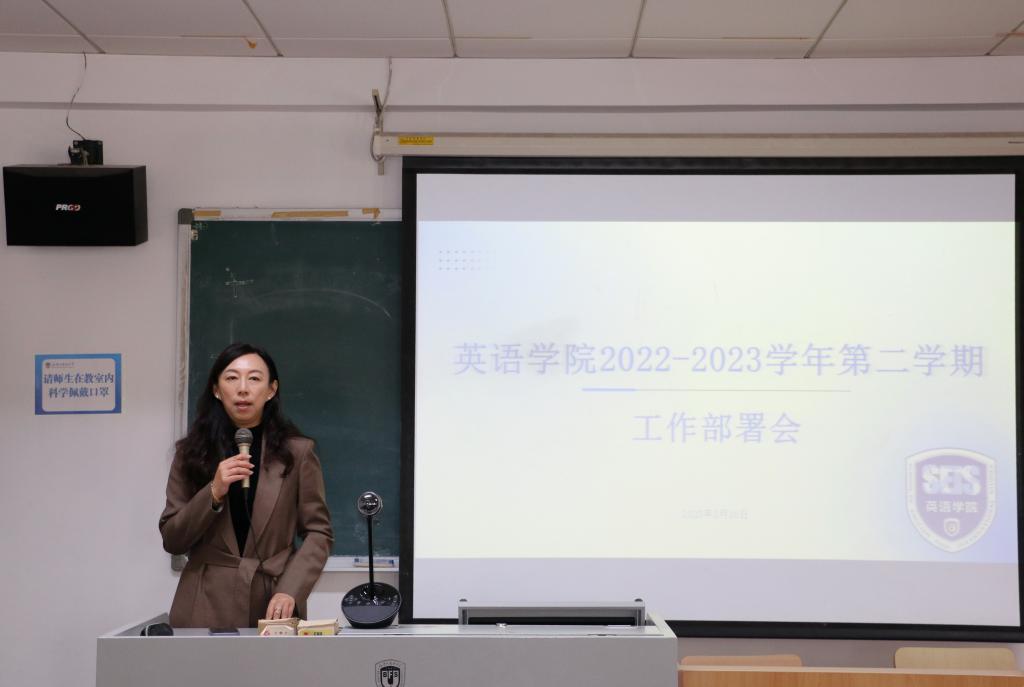 作为英语人才培养的领头羊,应顺应时代发展,培育高层次、复合型的英语人才。他还就本学期学院人事工作进行了通报。