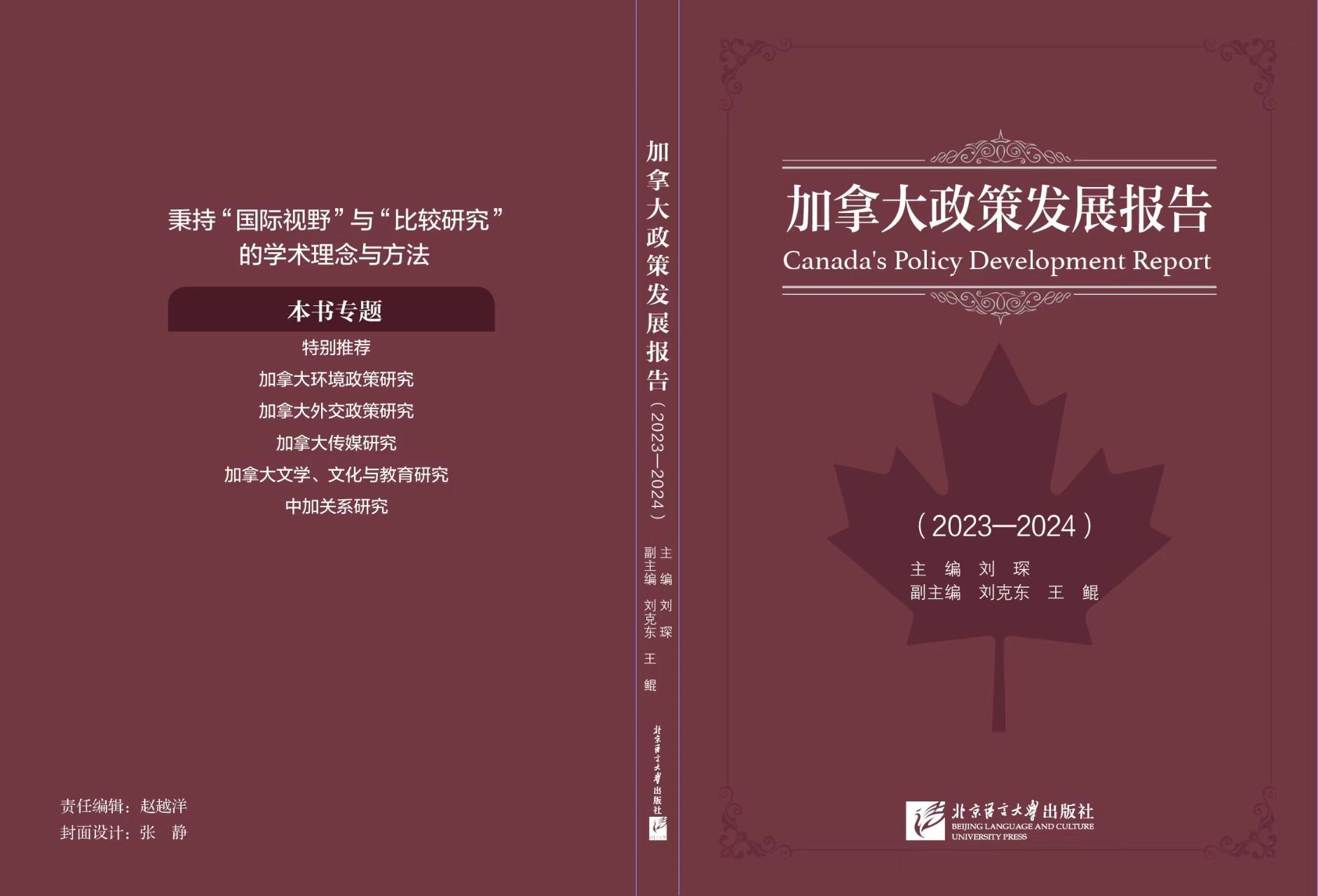 加拿大研究中心每年出版加拿大研究的年度报告,《2023—2024年加拿大政策发展报告》是第9部。在各方共同努力下,《加拿大政策发展报告》不断取得标志性成果,扎实凝聚学术影响力。本次年度报告由加拿大研究中心主任刘琛任主编,王鲲、刘克东任副主编,由北京语言大学出版社出版。