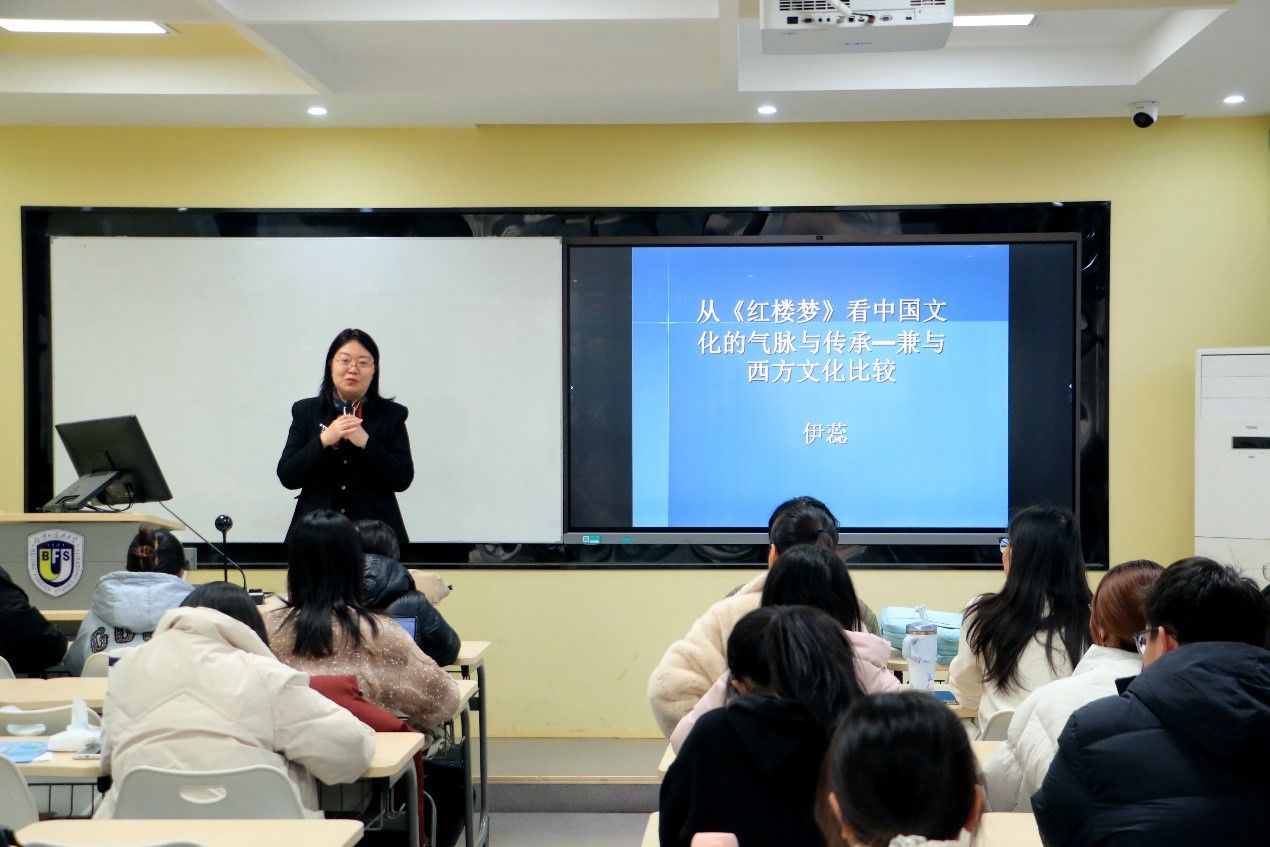 伊蕊副教授应邀作题为“从《红楼梦》看中国文化的气脉与传承——兼与西方文化比较”的讲座,百余名师生到场聆听,现场气氛热烈。