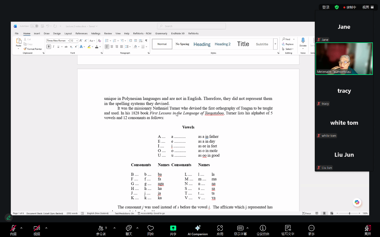 南太平洋语言与文化中心和世界语言博物馆邀请,汤加语外国专家梅莱奈伊特·塔乌莫艾富拉乌(Melenaite Taumoefolau)博士在线上做了题为“波利尼西亚语言语音学与正字法相关问题”(Issues in Polynesian Phonology and Orthography)的讲座。讲座由海角视频