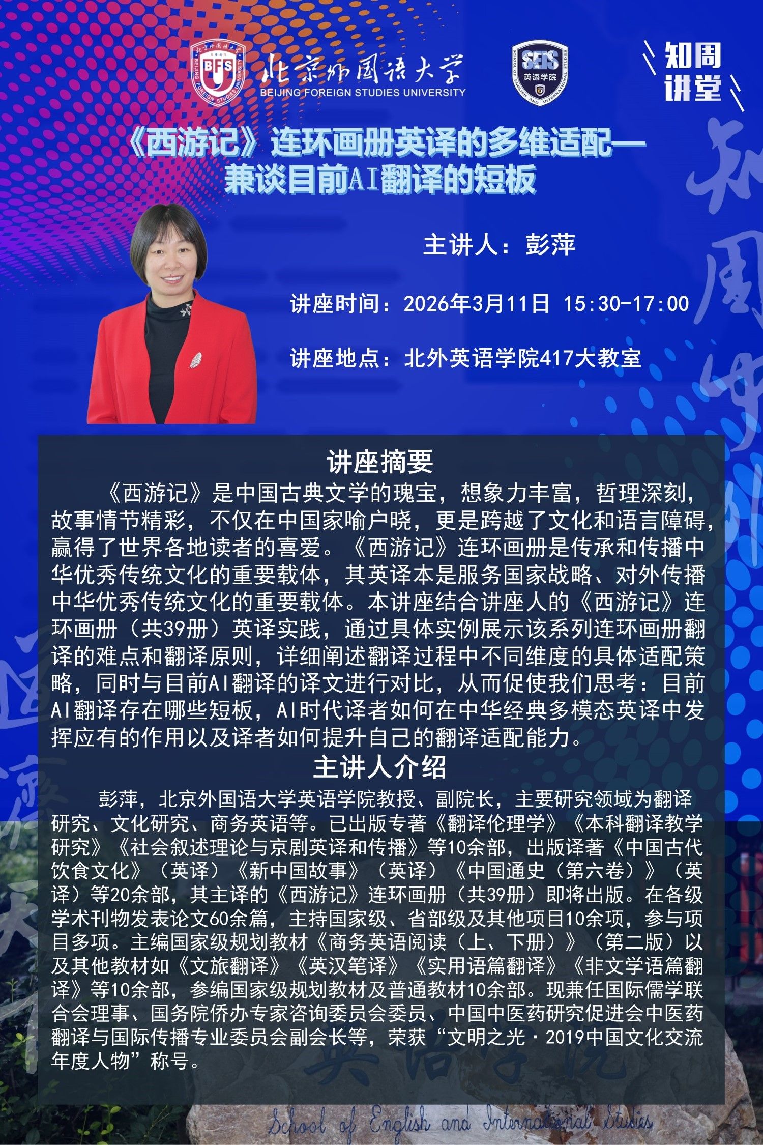 3月11日讲座:《西游记》连环画册英译的多维适配——兼谈目前AI翻译的短板