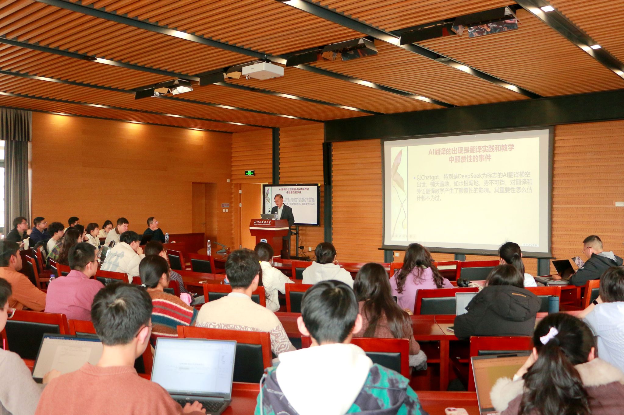 讲座最后,吴文安总结表示,陈明明的讲座以大量鲜活案例破解AI时代翻译实践难点,为翻译专业学习与实践指明方向。他呼吁全体师生夯实翻译基本功,掌握AI时代译后定稿核心能力,灵活处理文化负载表述,以专业能力做好翻译的点睛之笔,在国际传播中准确、生动传递中国理念。