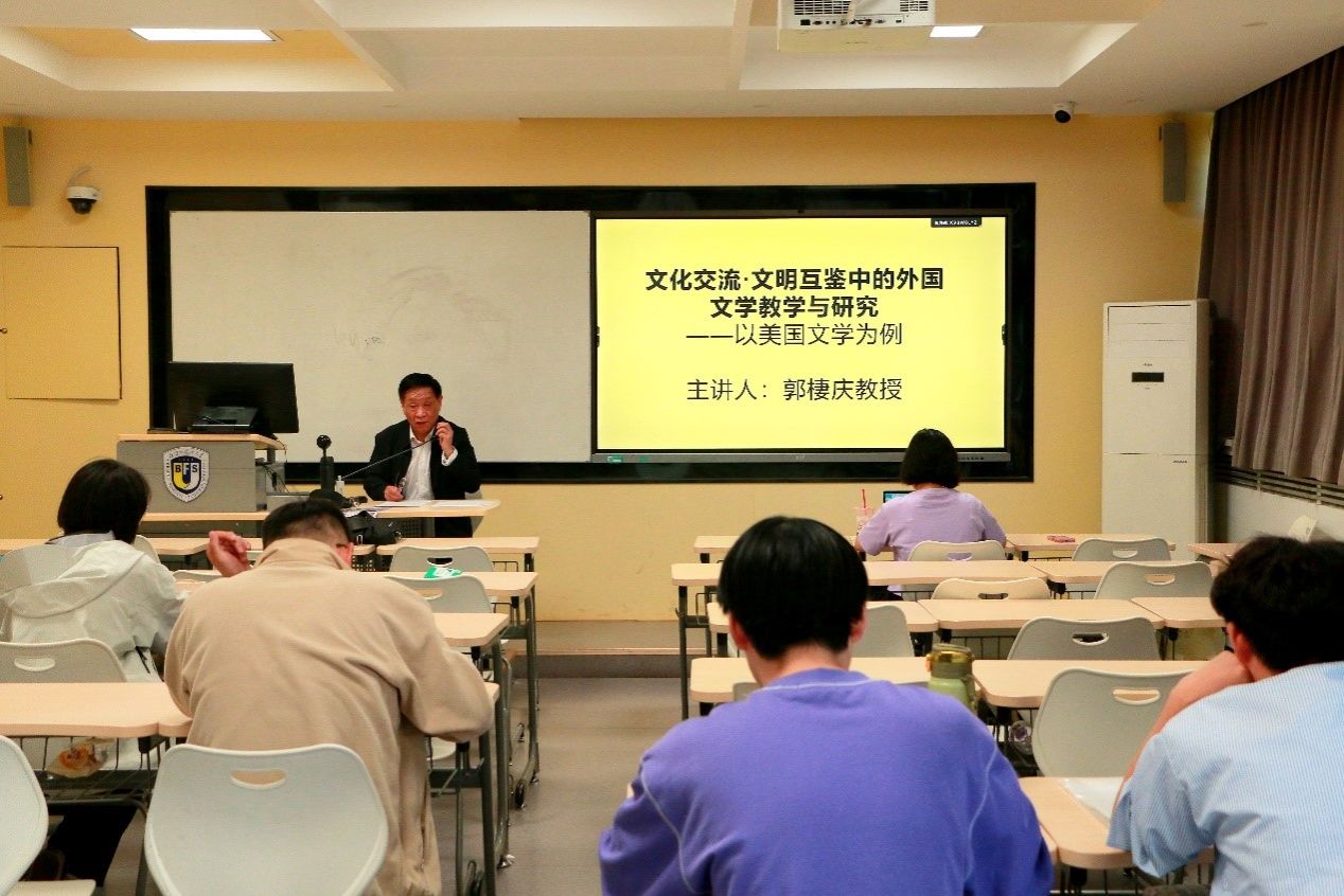 郭棲庆教授应邀作题为“文化交流·文明互鉴中的外国文学教学与研究——以美国文学为例”的学术讲座,吸引了相关专业师生到场参加。