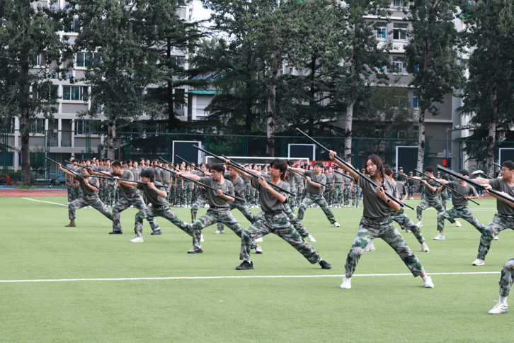 应急棍方阵是紧张活泼的军训场上独具特色的一道风景。金声玉振,棍势破竹,劈扫挑拨,与子同袍。每一次竭力的挥击,每一次反复的练习,皆是青春热血的炽热燃烧,都是钢铁意志和严整军纪的铿锵和鸣。应急棍方阵中频频出现一连同学的身影。作为来自一连的应急棍班班长,潘叮叮同学表示,这十四天的军训,让我们在严肃的训练中真切感受到军队中纪律与温情的交融。在应急棍方队,每一滴汗水都被看见,每一份努力都得到回应。从最初的生疏拘谨,到后来的全力以赴,大家的心态悄然转变:这不再是被动服从,而是发自内心的主动靠拢;个人的得失不再重要,方阵的集体荣誉已成为我们共同的目标。贾教官建立了透明的激励制度,让每个人的付出都不被辜负——无论是帮助同学的“小教员”,还是刻苦训练的同学,都会获得认可。他特意为我们申请标兵徽章,就是希望每个人都能带着荣誉、带着笑容结束训练。