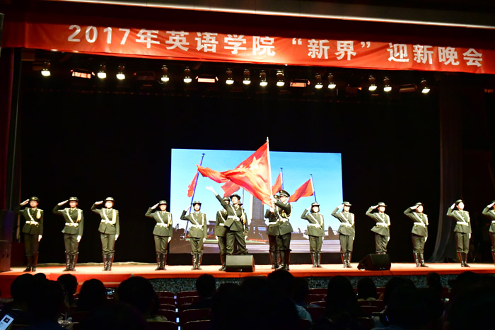——2017年10月13日晚,“新界•英语学院迎新晚会”在千人礼堂开幕。英语学院党总支书记路兴以及辅导员、班主任、2017级英院全体学生出参加了本场晚会。