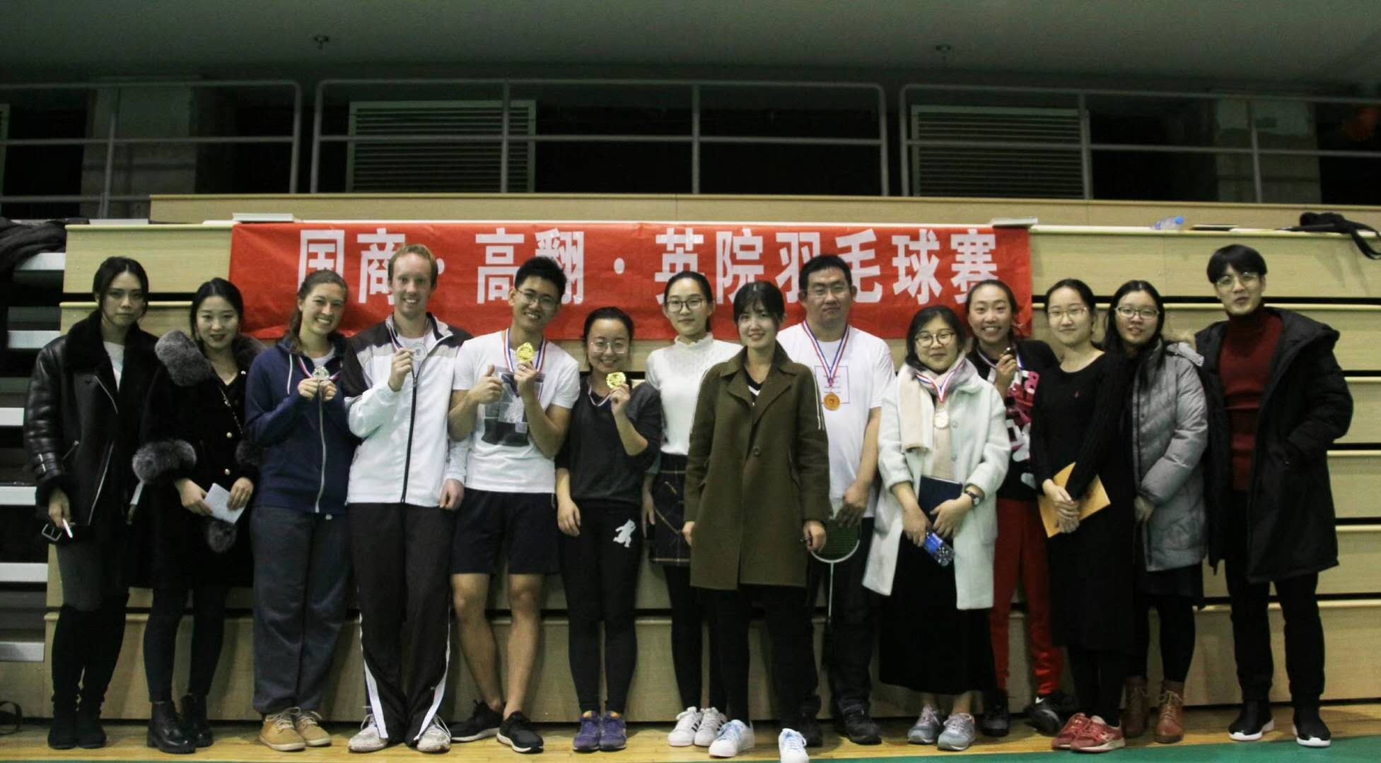 ——2017年11月25日-26日,由英院、高翻、国商三个学院联合举办的第三届英院•高翻•国商羽毛球赛在北京外国语大学体育馆二层成功举行。三个学院派出选手参赛,经过几个回合的激烈角逐,英语学院斩获了男单、女单、女双、混双四项冠军和男双亚军,总积分位列第一,成功蝉联了三院羽毛球赛团体总冠军!