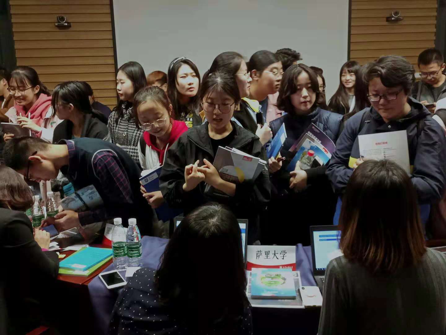 院长张剑、副院长谢韬与来自英国、澳大利亚多所大学的招生主管进行了交谈。其中包括英国杜伦大学、谢菲尔德大学、伯明翰大学、兰卡斯特大学等15所名校。同时还在活动现场与同学们进行了交流。同学们对这次名校见面会的举办,特别是对国外多所大学招生主管的现场讲座和介绍产生了浓厚的兴趣,不断积极提问,现场气氛活跃。