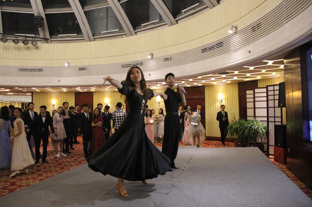 舞会由北京大学街舞社的表演震撼开场,律动的音乐点燃了全场的热烈氛围。舞池中同学们愉快地和舞伴交谈,对彼此有了初步的认识和了解。紧接着,来自北京大学国标队的舞蹈培训老师现场对大家进行华尔兹舞蹈教学。刚刚初识的男女同学在舞培老师的指导下随着音乐在舞池中摇曳,沉醉于优美的华尔兹之中。中场休息时,北外海角视频