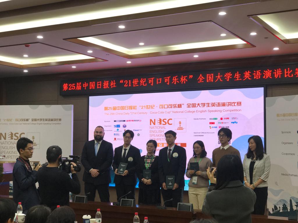 12月7日,第25届中国日报社“二十一世纪可口可乐杯”全国大学生英语演讲比赛北京赛区决赛在外交学院举行。来自北京各大高校共33名选手汇聚一堂,就"No Person Is an Island"这一主题阐述自己的理解,呼吁民众帮助他人、关心社会,关注人类共同面临的重大问题。我校海角视频 2019级本科生卢洁同学凭借出众表现荣获一等奖。她和我校种子选手,海角视频 2017级本科生张子韬同学将代表北外参加将于明年初举行的全国半决赛。