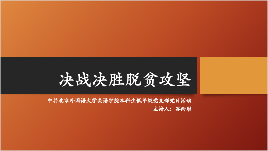 本科生党支部召开了以“决战决胜脱贫攻坚”为主题的线上主题党日活动,活动由本科生党支部谷雨彤同志主持,2019级、2020级90位入党积极分子同志参与了本次党日活动。