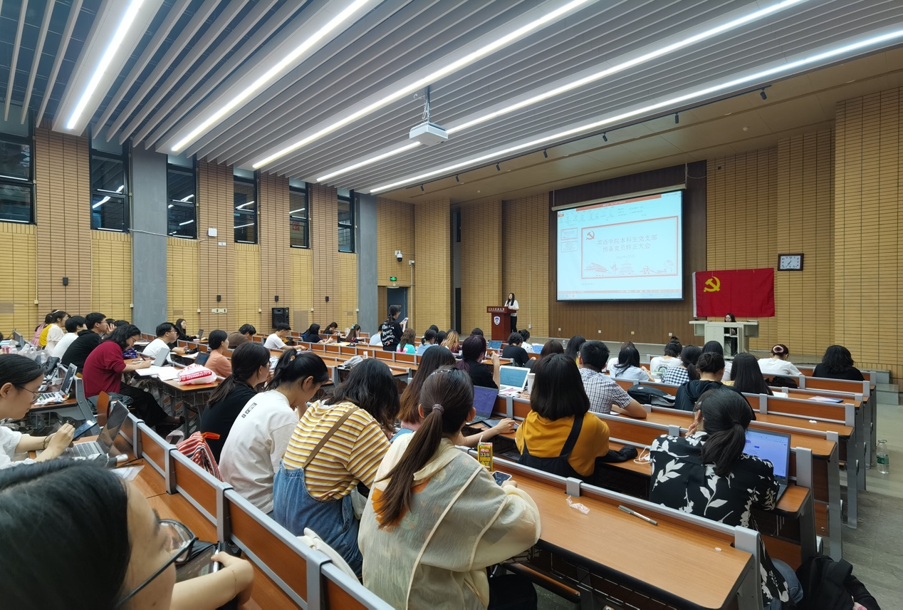本科生低年级、高年级党支部在逸夫楼三阶教室召开预备党员转正大会。本次大会由本科生高年级党支部书记孙琳同志主持。本科生低年级、高年级党支部89名正式党员、预备党员出席本次会议。