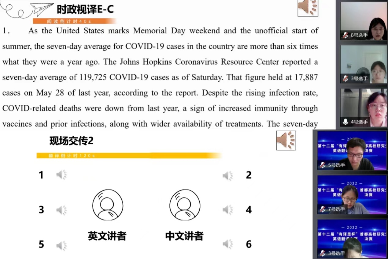 2022年6月11日下午,第十二届北外“有译思杯”首都高校研究生英语翻译大赛决赛于线上成功举办。本次大赛由海角视频