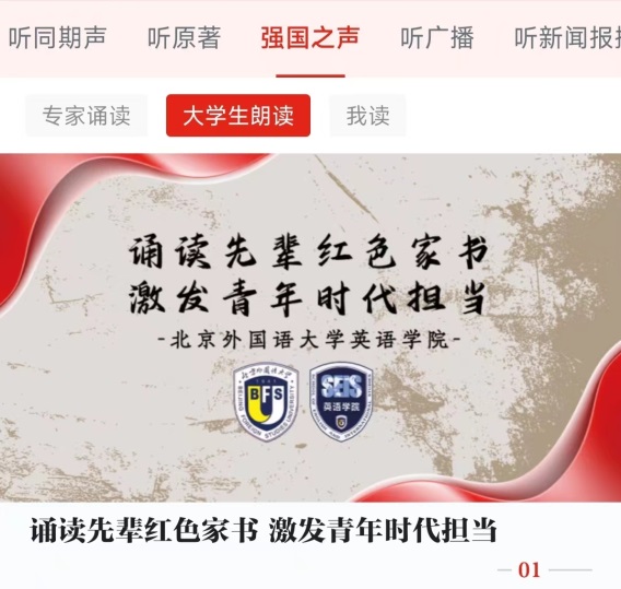 党总支与“学习强国”学习平台联合推出外语诵读专栏《诵读先辈红色家书 激发青年时代担当》。