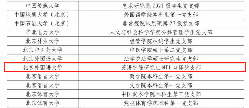 研究生MTI口译党支部荣获三等奖。