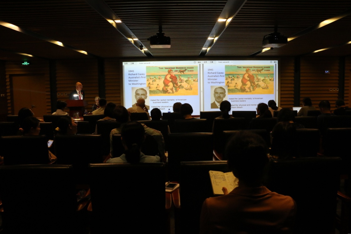 ——5月15日晚7点“北外澳研大讲堂”(BFSU Distinguished Lecture Series in Australian Studies)第一讲在北外图书馆四层学术报告厅隆重举行,我校客座教授、澳大利亚社会科学院院士、澳大利亚人文科学院院士、迪肯大学荣休教授大卫•沃克(David Walker)作了题为“澳美关系:100年的伙伴情谊?”(The Australia US Relationship: One Hundred Years of Mateship?)的讲座。讲座由海角视频
