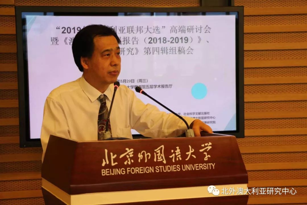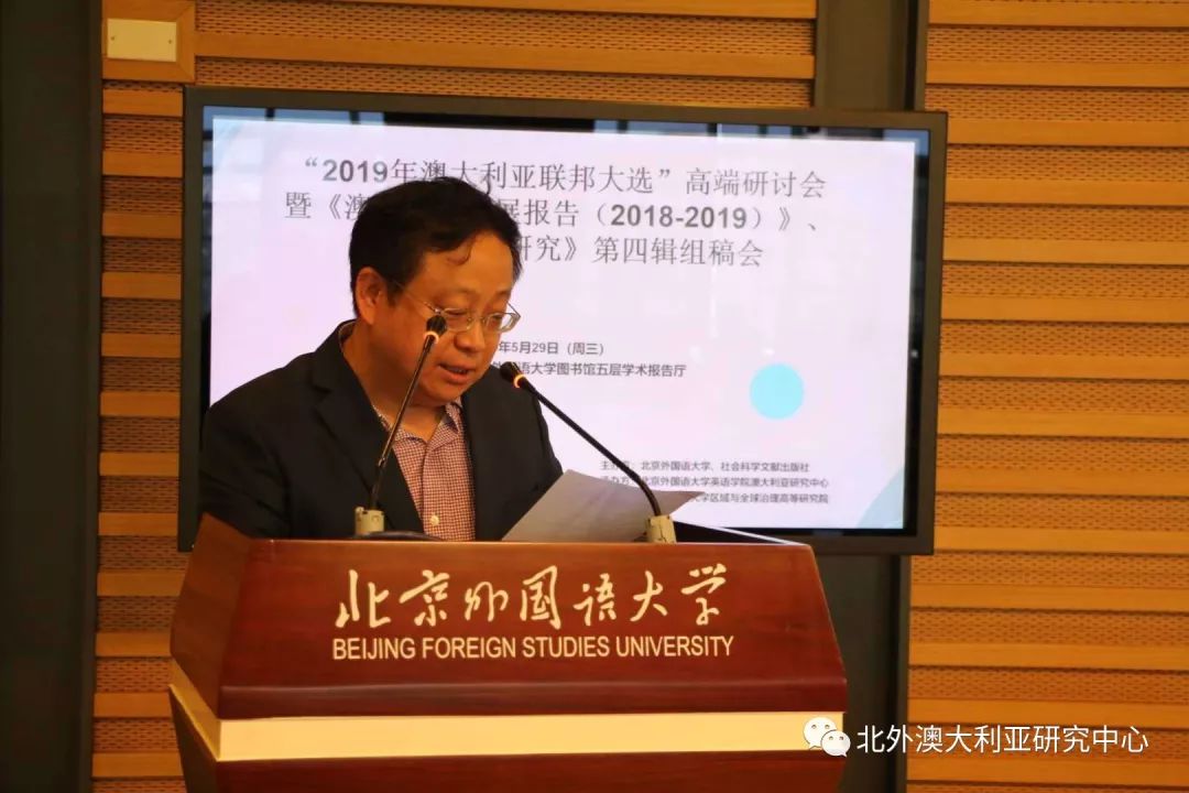 副校长、中国亚太学会副会长、中国亚太学会澳大利亚分会会长孙有中首先致辞,教育部国别与区域研究工作秘书处主任罗林也对“澳研模式”进行了充分肯定。