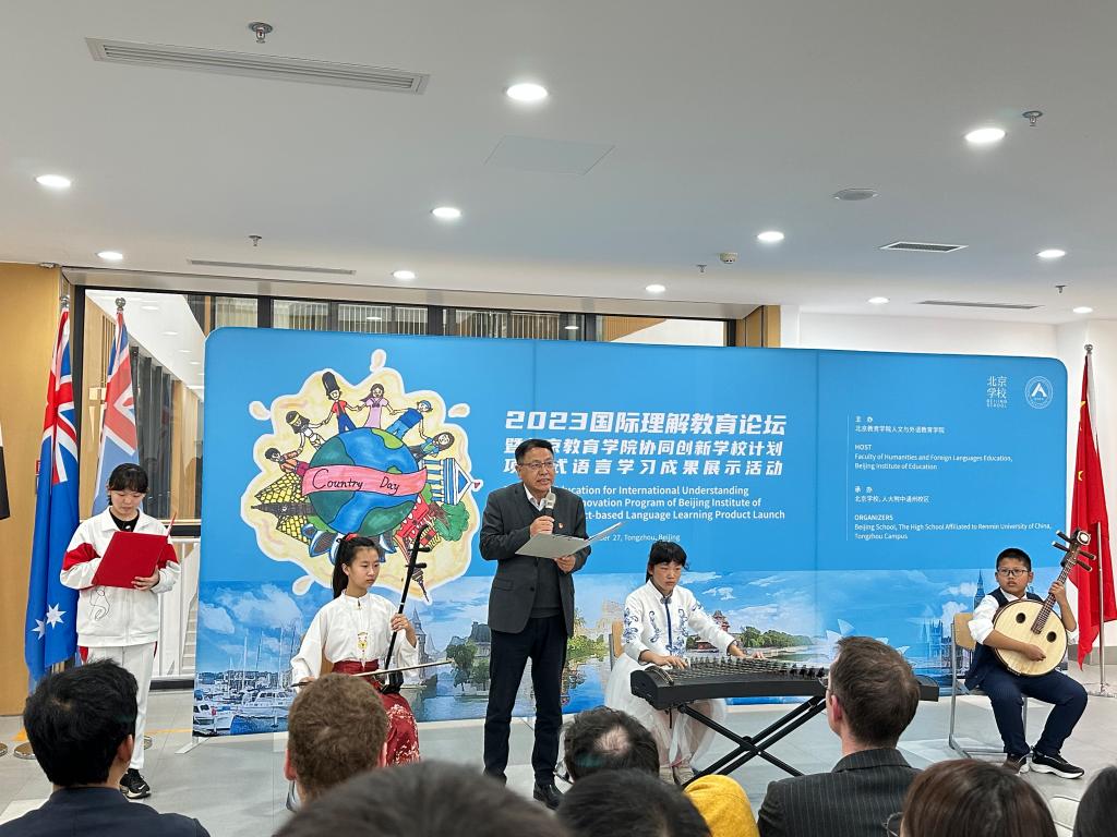 副院长杨鲁新带领18名学生代表前往北京学校参加国际理解教育论坛暨北京教育学院协同创新学校计划项目式语言学习成果展示活动。本次活动由北京教育学院人文与外语教育学院主办,北京学校和人大附中通州校区共同承办。