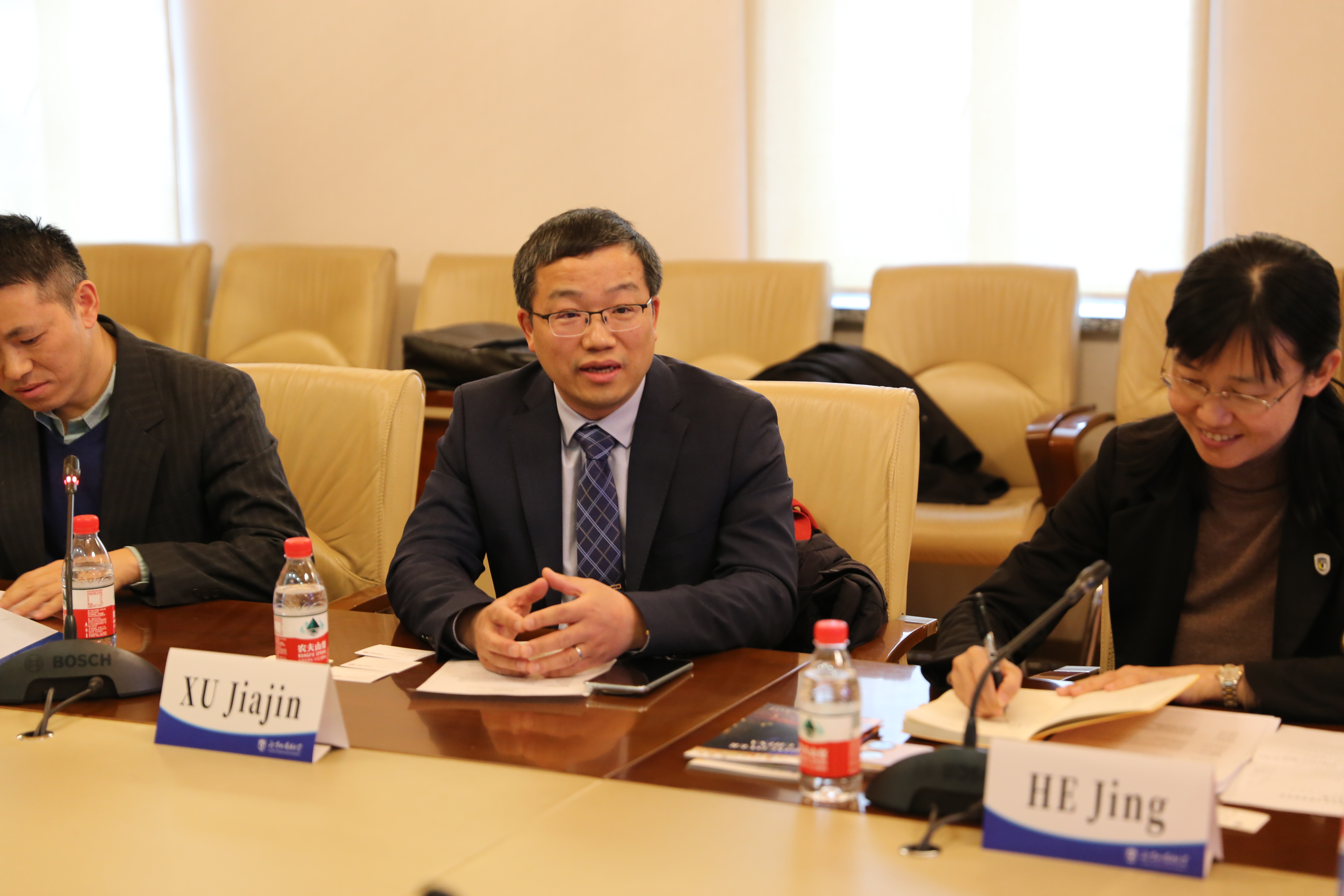 副院长张莲教授、副院长杨鲁新教授和语言学中心主任夏登山教授以及北外中国语言文学学院邓川林教授参加了会谈。