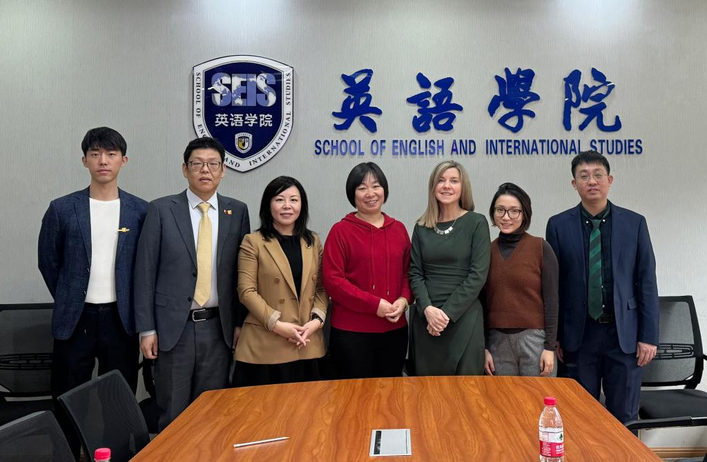 彭萍对科克大学代表团一行表示欢迎,并介绍了我院的基本情况、学术建设现状以及对外合作情况,希望能够与科克大学在学生交流交换以及教师科研方面尽快开启富有成效的合作。