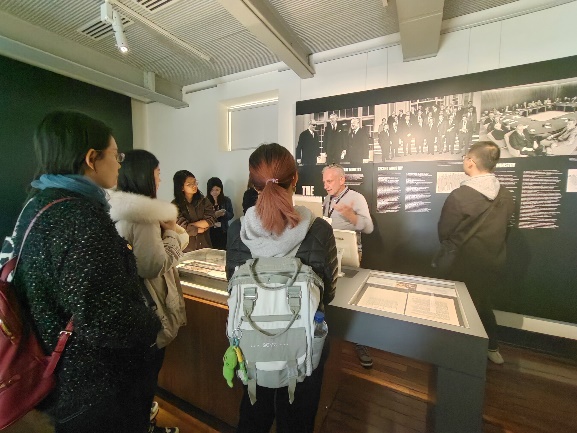 下午,实践团成员参观了位于西悉尼大学校园内的惠特拉姆研究院(Whitlam Institute)。该研究院致力于研究和传承澳大利亚前总理格夫·惠特拉姆(Gough Whitlam)的政治遗产和政策成就。惠特拉姆是澳大利亚历史上具有重要影响力的政治家之一,在任期间致力于提高澳大利亚少数族裔的社会地位,并推动中澳两国关系的发展,积极开展对华交流和合作,为中澳建交作出了重要贡献。实践团成员参观了展示惠特拉姆生平事迹和政策成就的各类展品,深入了解了惠特拉姆的政治理念和他对澳大利亚国家发展的影响。