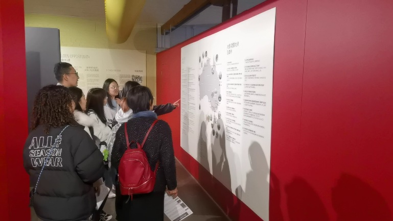 (实践团全体成员观看在澳华人居住地历史变迁展板)