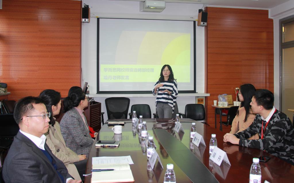 党总支书记路兴介绍了学院基本情况和人才培养目标、学生实习实践需求等。校友代表田畅和毕业生代表陈阳分别就自身职业选择以及在学而思网校的工作情况、培训经历与大家进行交流分享。