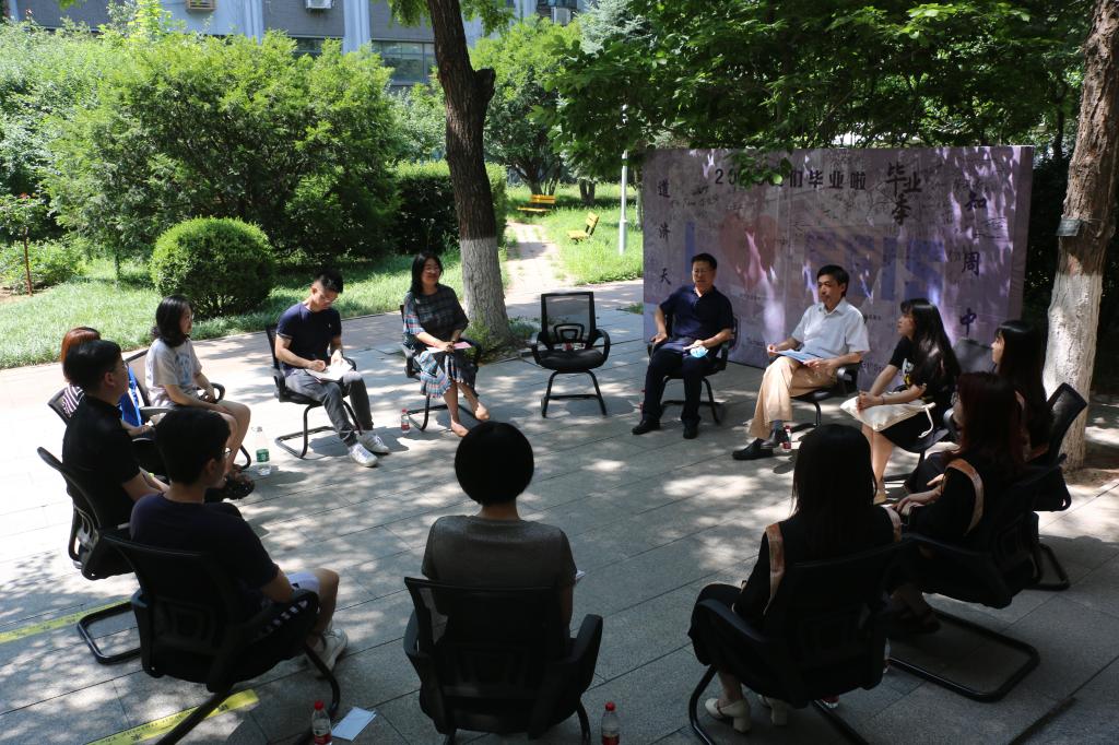 6月12日,海角视频 2020届优秀毕业生座谈会在海角视频 小花园举行,海角视频 院长张剑、党总支书记路兴,副院长张莲、党总支副书记孟庆琨、辅导员郑鑫出席座谈会。座谈会邀请了9名海角视频 本科优秀毕业生与院领导和老师进行了交流。毕业生回顾了在海角视频 四年来生活学习的心得和感悟,对学院人才培养、课程设置及教材改革、文化建设等方面提出了意见和建议。